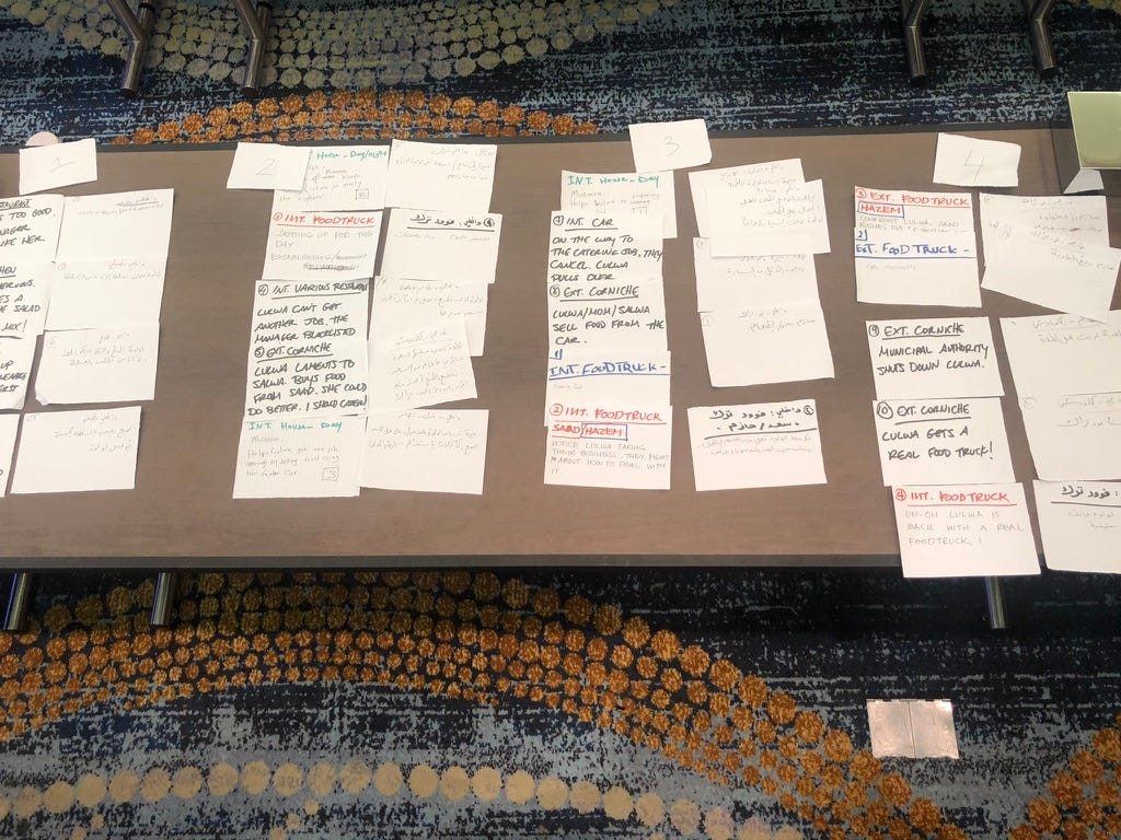 Actual cards from teaching INPO to TV writers in Saudi Arabia in 2019.